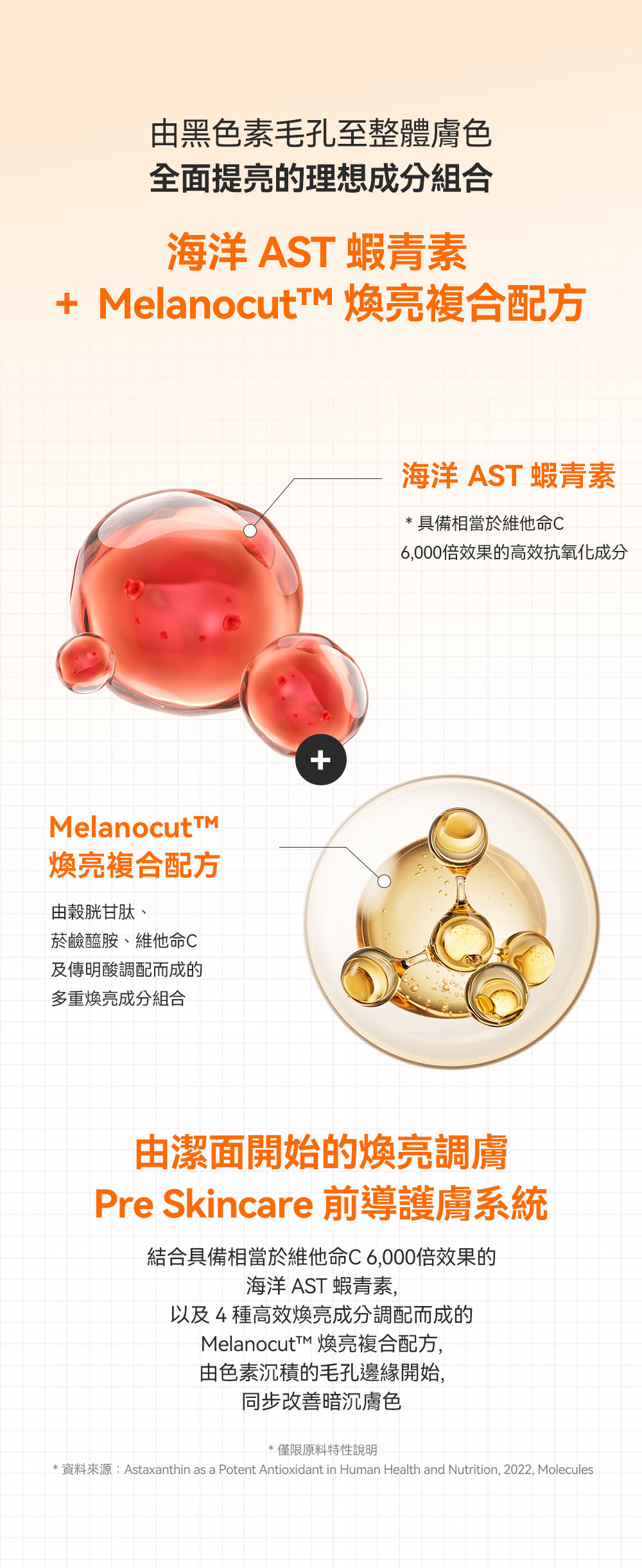 ✨【AST 蝦青素 × Melanocut™ 煥亮組合】前導護膚 層層煥亮