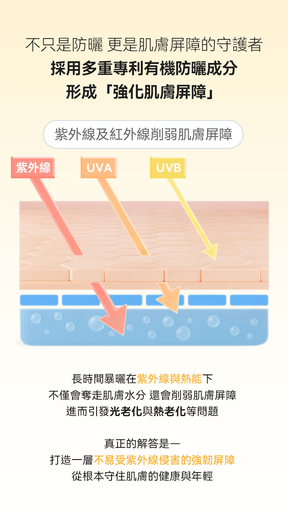💛【全天廣譜防護】廣譜防護全面防護UVA與UVB 有效預防曬黑、曬老與肌膚光老化