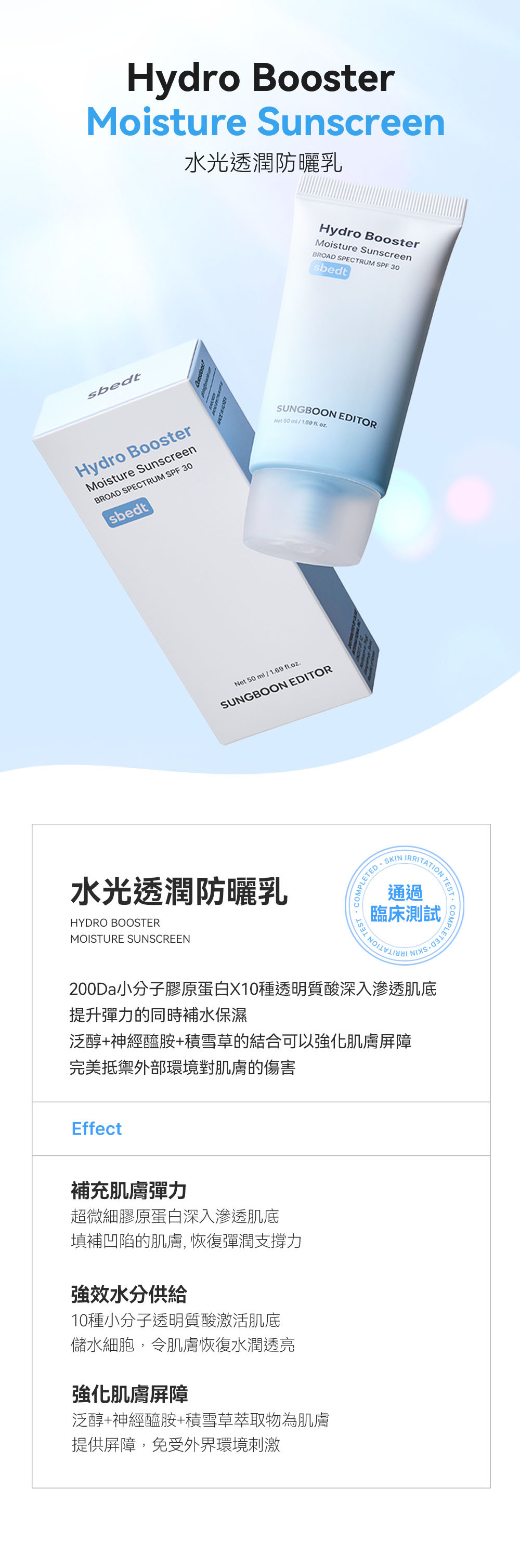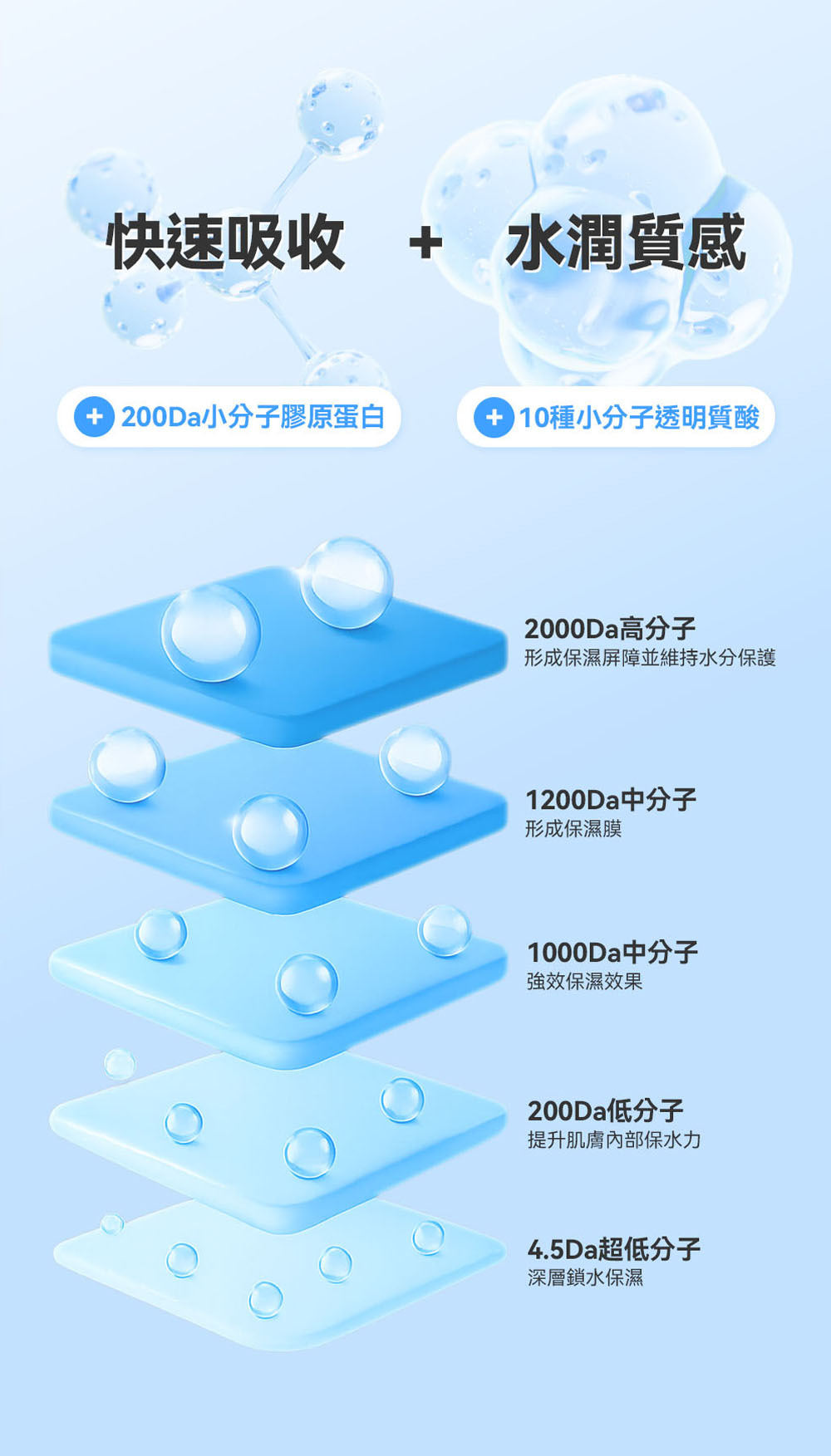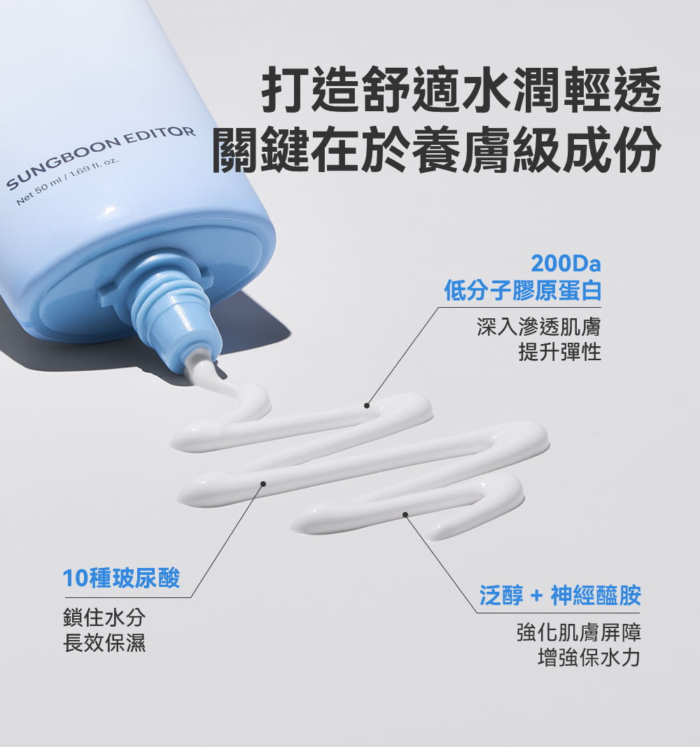 🩵 【 舒適水潤質地】 200da低分子膠原蛋白和10種玻尿酸 深入滲透長效保濕