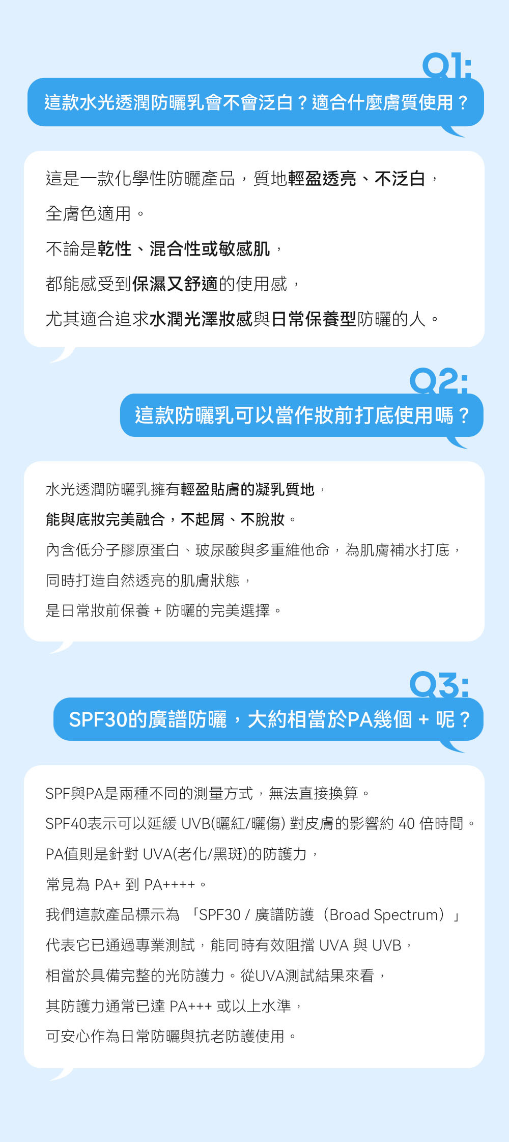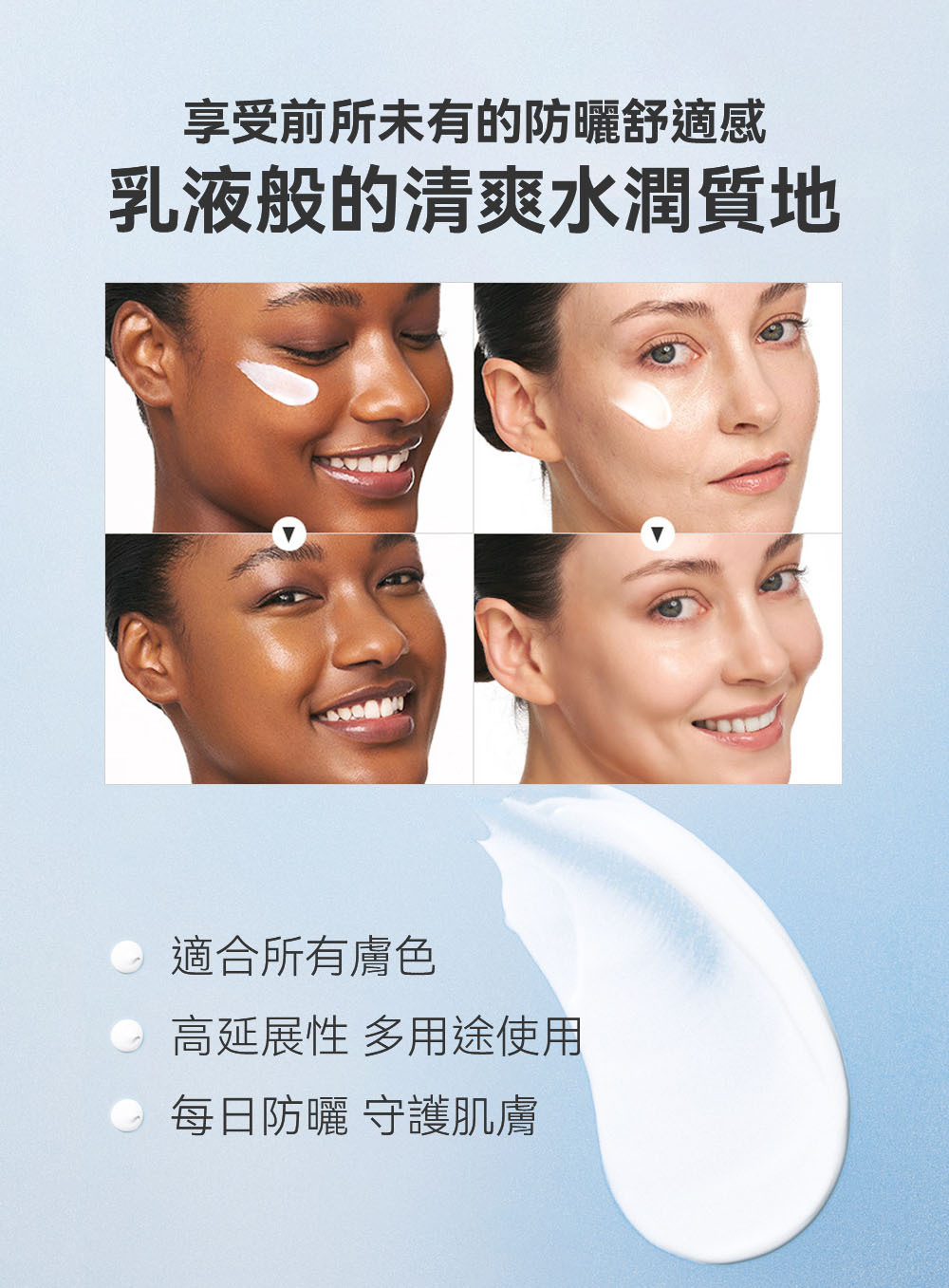🩵 【全天廣譜防護】 全面防護UVA與UVB 預防曬黑、曬老與肌膚光老化