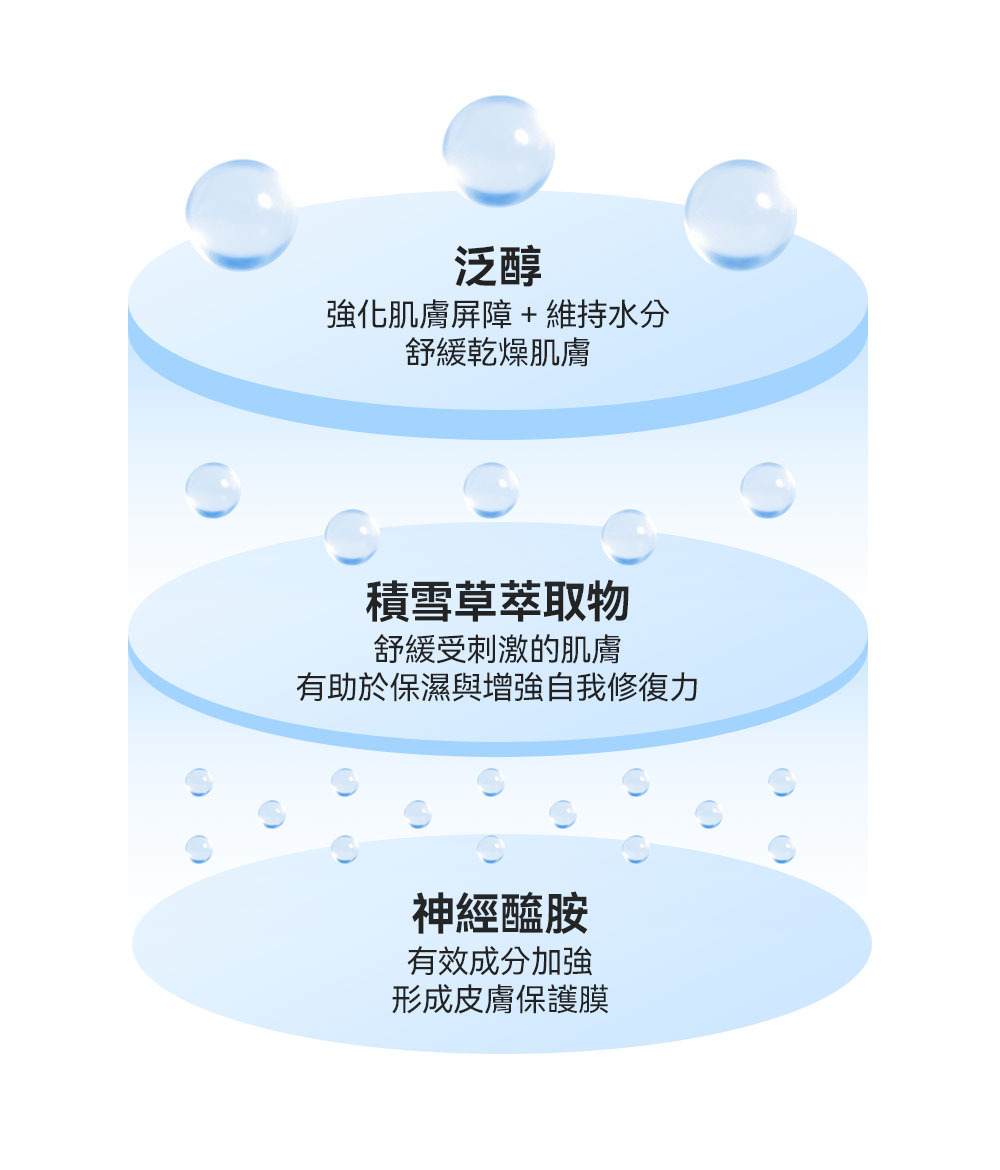 🩵 【 保濕強化屏障 】添加泛醇、神經醯胺、積雪草萃取 提升整體肌膚健康度