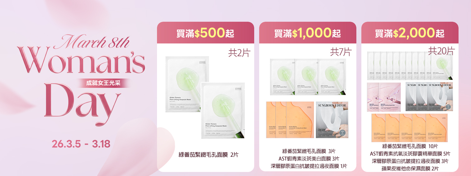 Until 2026-03-18T17:00:00.000+00:00 🌸女王盛典:再享9折 + 滿額禮🌸 on selected products
