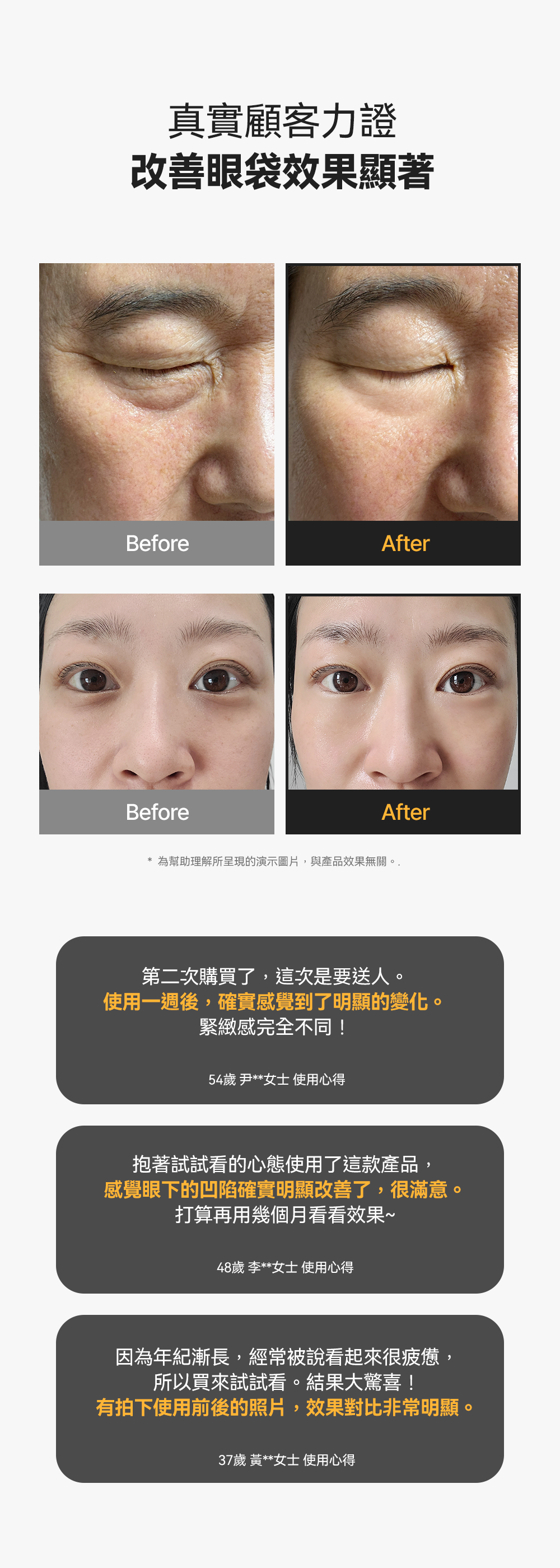 💛【提拉眼袋消除眼紋】使用兩週 眼部肌膚問題 改善最大123.12%